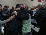 - Ray hugs his wife after a ballot vote lands in favor of the new Middle School at Town Meeting, Oct., 2011
