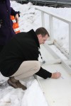 - Ray signs the ceremonial beam on behalf of Hingham Superintendent Dot Galo, at the topping-off ceremony for the new Middle School, Feb. 2013